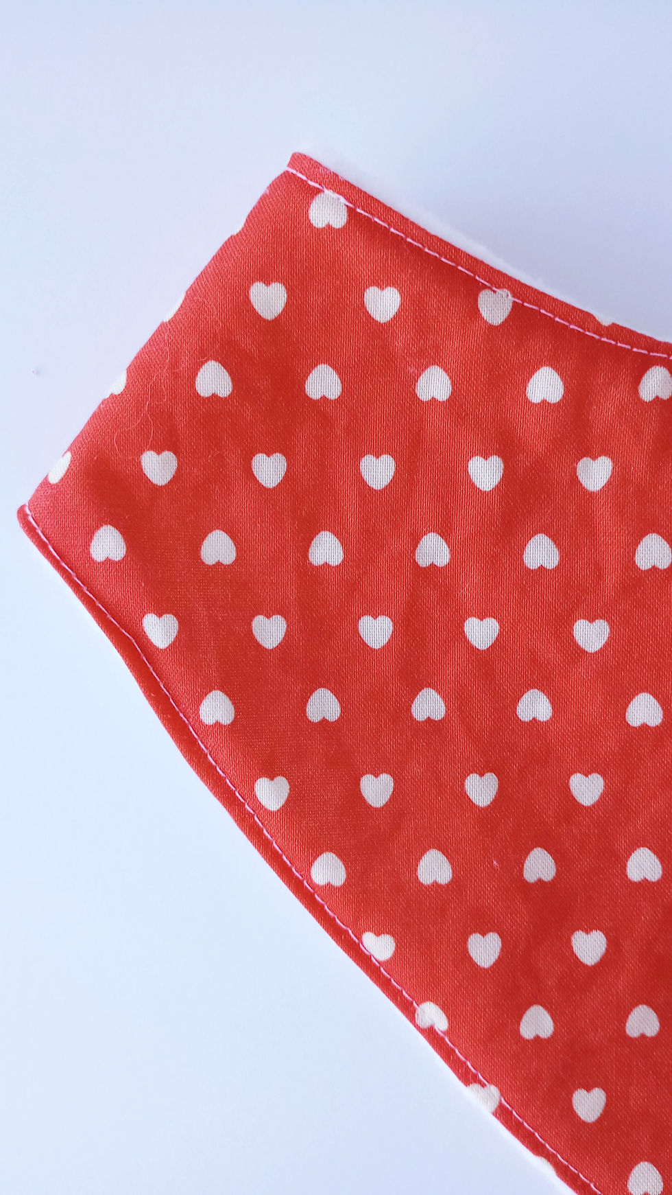 This listing is for one stay-dry bandana bib made with 100% cotton featuring cute Happy Hearts on ivory background.